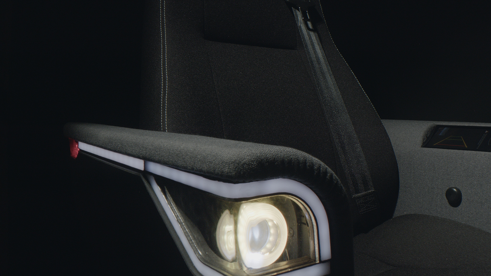 Functions pedal drive, headlight, side blinkers, horn, media player, stereo speakers, seat belt, back storage compartment, embroidered headrest, height adjustable, backing camera with sensors.